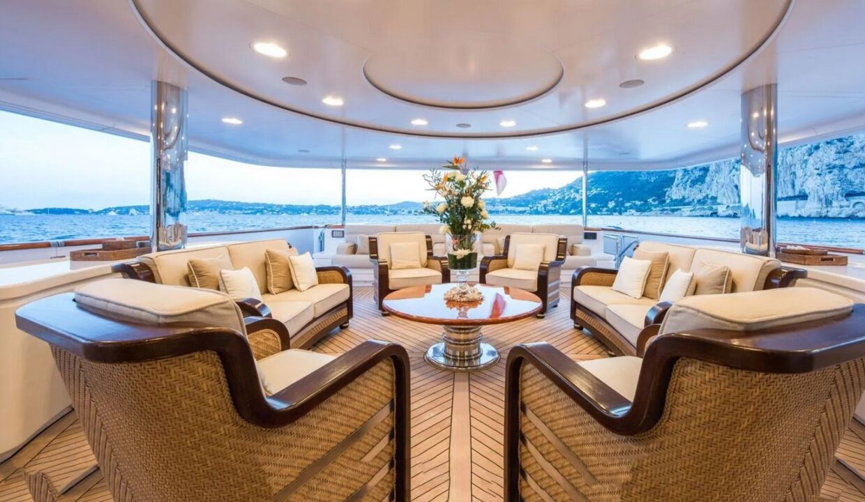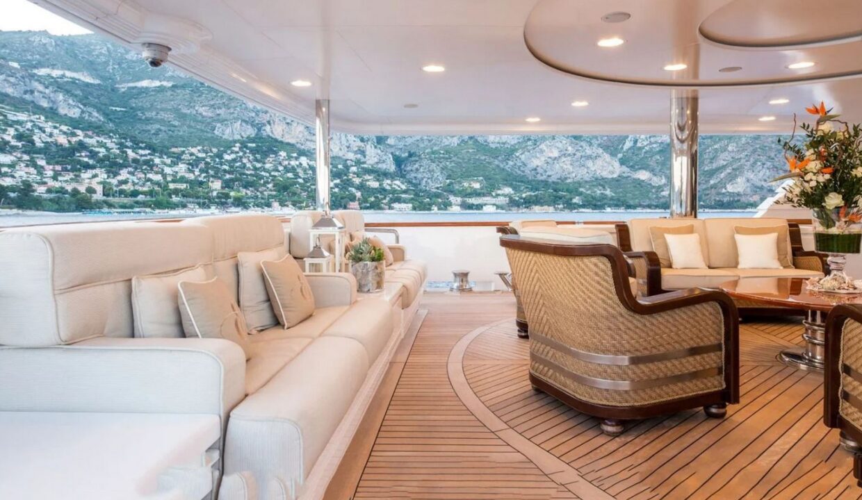 The yacht is defined by her extensive outdoor spaces, that make her the perfect choice for charter groups looking to make the most of their surroundings, with plenty of options for sunbathing, relaxing, al fresco dining and more. The main deck features covered seating, while the huge sundeck is home to numerous features including sunpads, a bar and Jacuzzi forward and a climate controlled glass-walled gym amidships. The aft sundeck is home to plenty of sun pads, modular sofas and love seats aft. The upper deck – which connects directly with the sky lounge – is a popular spot for enjoying al fresco feasts.