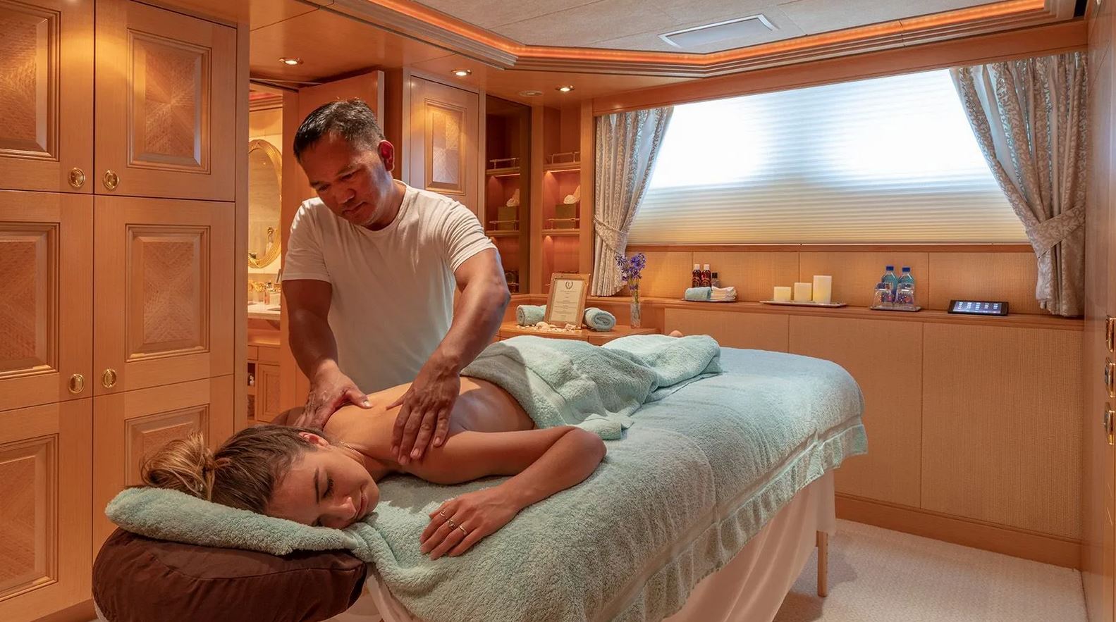The yacht welcomes up to 12 guests on board, with flexible accommodations set up to suit all groups. Families will particularly love the yacht thanks to her child-friendly setup. Guest cabins include the on-deck master suite, four identical King cabins, a queen plus single and Pullman, and an optional seventh cabin equipped with murphy beds an/or massage table.